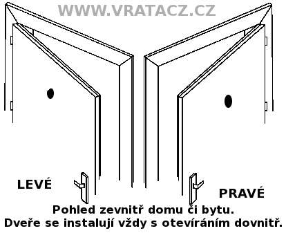 Podle normy se vchodové dveře montují vždy s otevíráním dovnitř! V případě, že vám toto nevyhovuje, nebo nevíte jestli máte pravé či levé dveře raději nás kontaktujte.